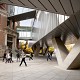 The entry to the ART Lab, punctuated by V shaped columns, is engaging. The studio spaces are flooded with light and face the core of the campus. The dynamic 4-storey open staircase serves as the meeting space for the school. The contemporary building plays masterfully against the early 20th century residence that it embraces.